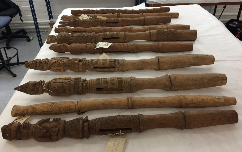The roots of woodcarving sculpture can be traced back to ancient civilizations that harnessed the beauty and versatility of wood as a medium for artistic expression; artisans adorned furniture, tombs, and temples with intricate carvings. Woodcarving was a decorative art form and played a significant role in religious and cultural contexts, telling stories and preserving beliefs for generations. During the Renaissance era in Europe, skilled artisans carved elaborate altarpieces, choir stalls, and wooden panels, contributing to the grandeur of cathedrals and churches. The period saw an integration of woodcarving with other art forms, such as painting and architecture, resulting in stunning masterpieces that remain revered today. The ethnographical collection of woodcarvings by Northcote Thomas in 1909 from the wood and ivory carvers' guild at Igbesamwan, Benin City in pre-colonial Nigeria is a testament to the ingenious, human creativity which has continued today at Elikiba Signature Studios Limited. The Northcote Thomas Collection is in the care of the University of Cambridge’s Museum of Archaeology & Anthropology, according to the [Re:] Entanglements project led by Paul Basu at the Pitt Rivers Museum and School of Anthropology at the University of Oxford; as illustrated by the ethnographical image below.